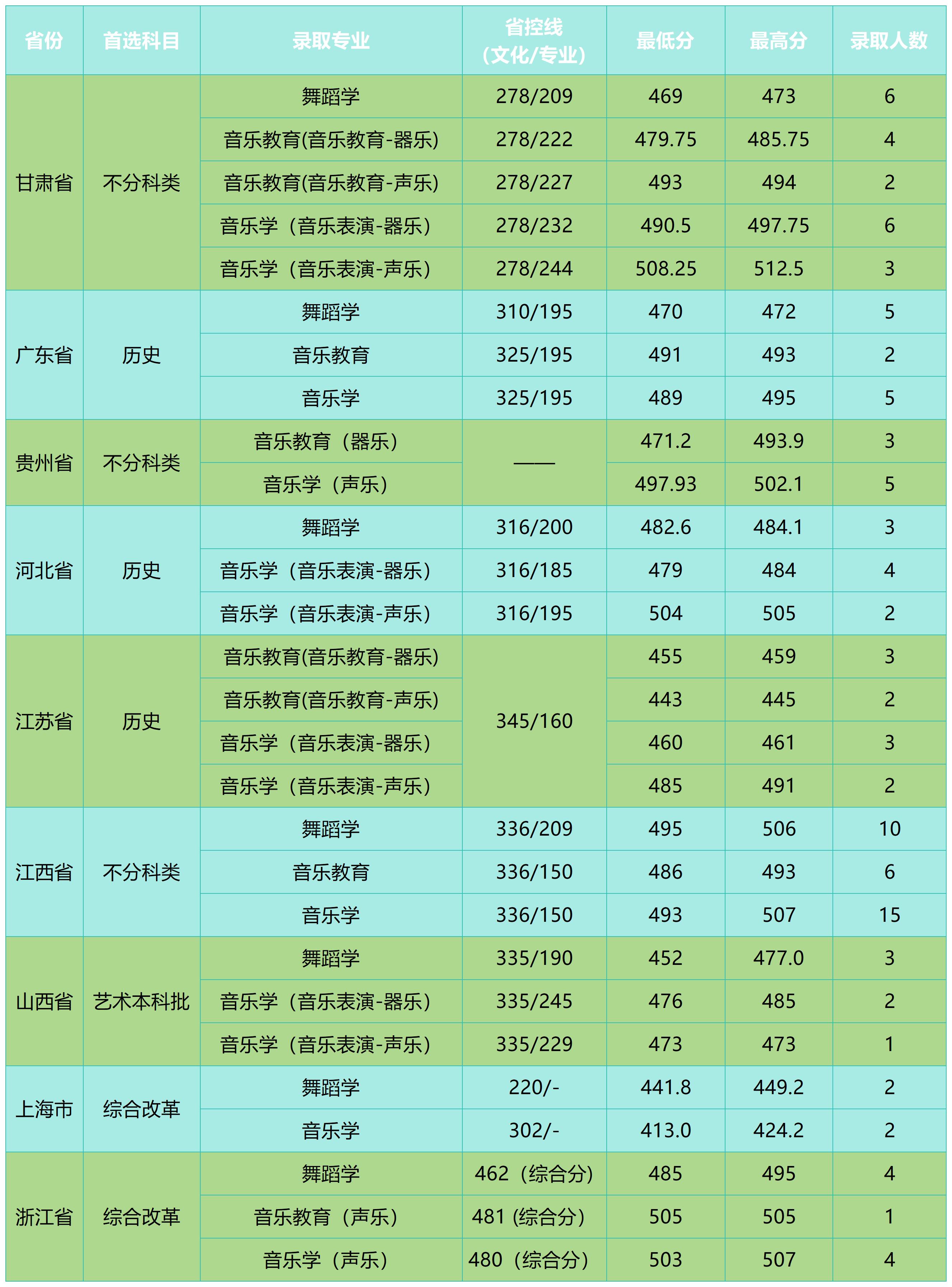 2024录取|湖南理工学院2024年外省音乐舞蹈类分省分专业录取情况